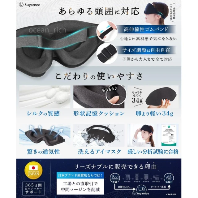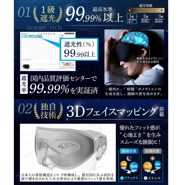 日本原裝進口 黑洞3D眼罩 遮光99.9% 舒適透氣午睡旅行飛行睡眠改善 敏感肌鬆緊帶 Suyamee