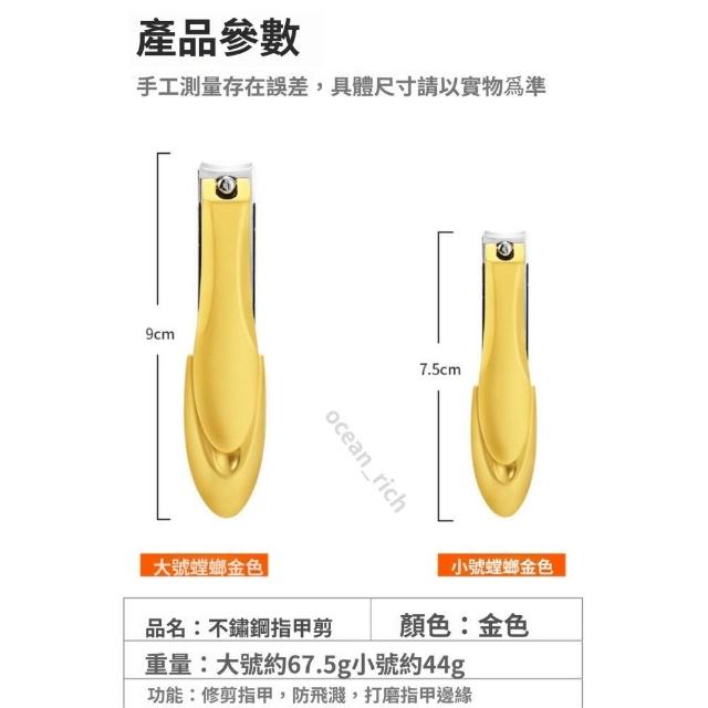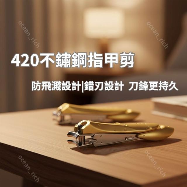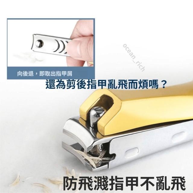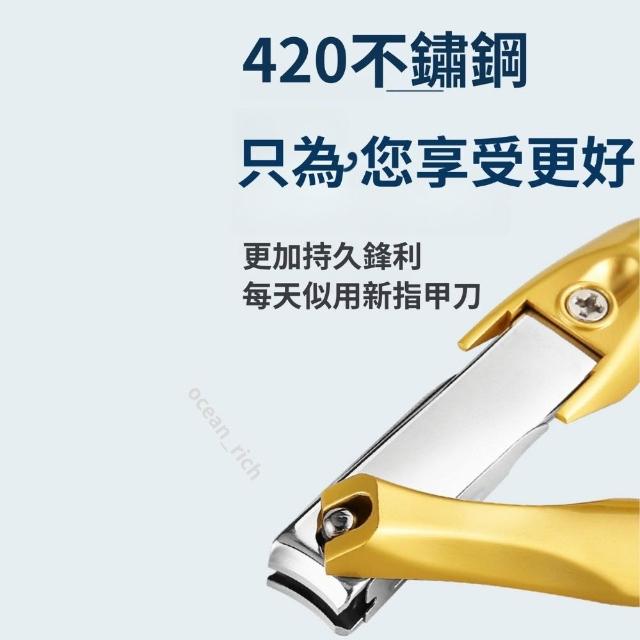 {台北出貨} 德國工藝指甲剪 420不鏽鋼指甲剪 斜口指甲剪 金黃色 防飛濺設計 銼刀指甲剪