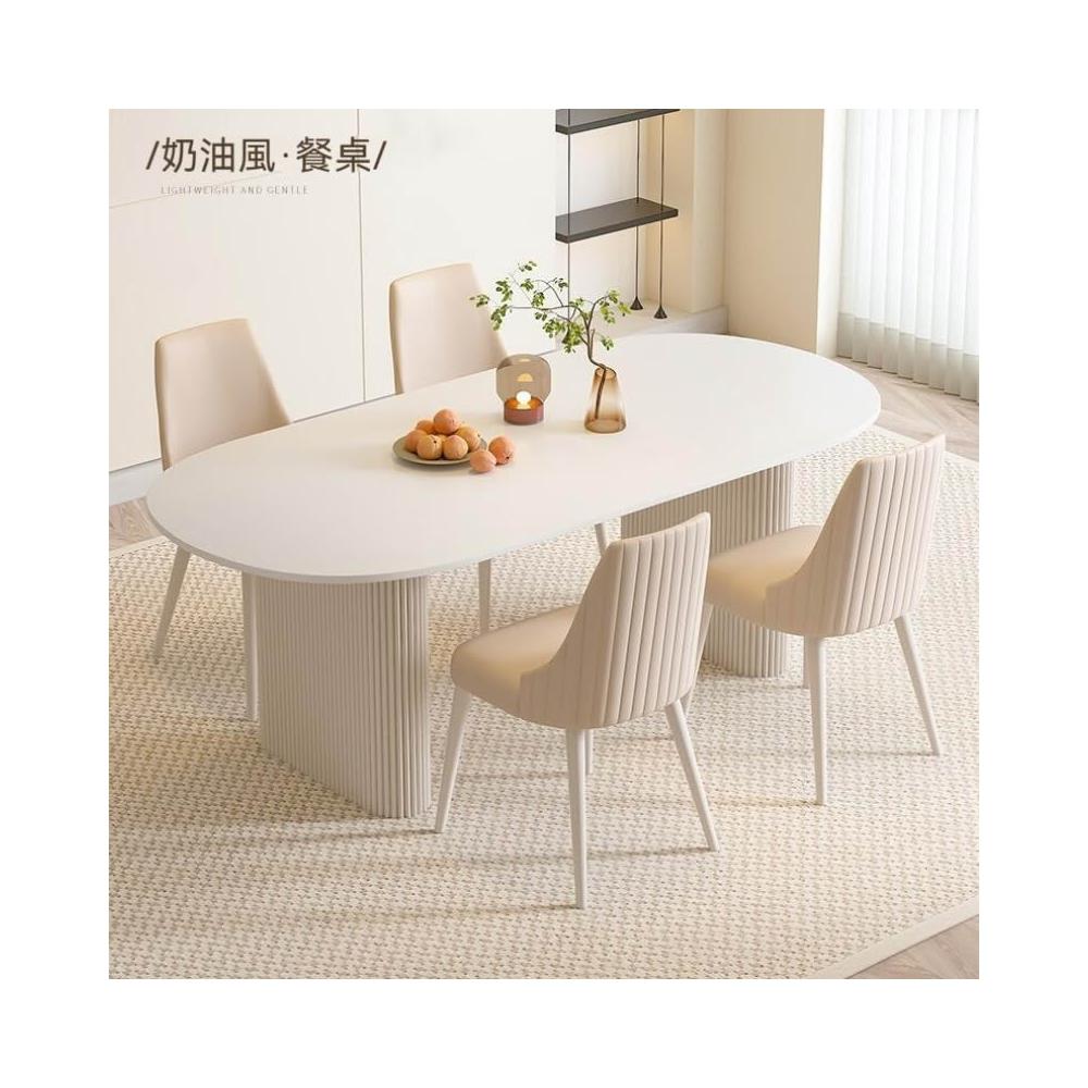含稅/免運奶油風家用岩板橢圓形餐桌/小戶型現代簡約餐桌/網紅輕奢家庭純白餐桌椅 CZ-02