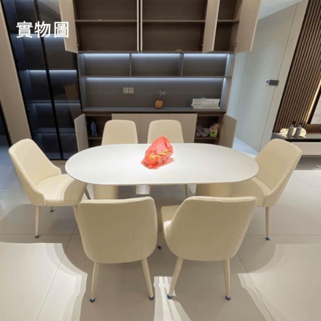 含稅/免運奶油風家用岩板橢圓形餐桌/小戶型現代簡約餐桌/網紅輕奢家庭純白餐桌椅 CZ-02