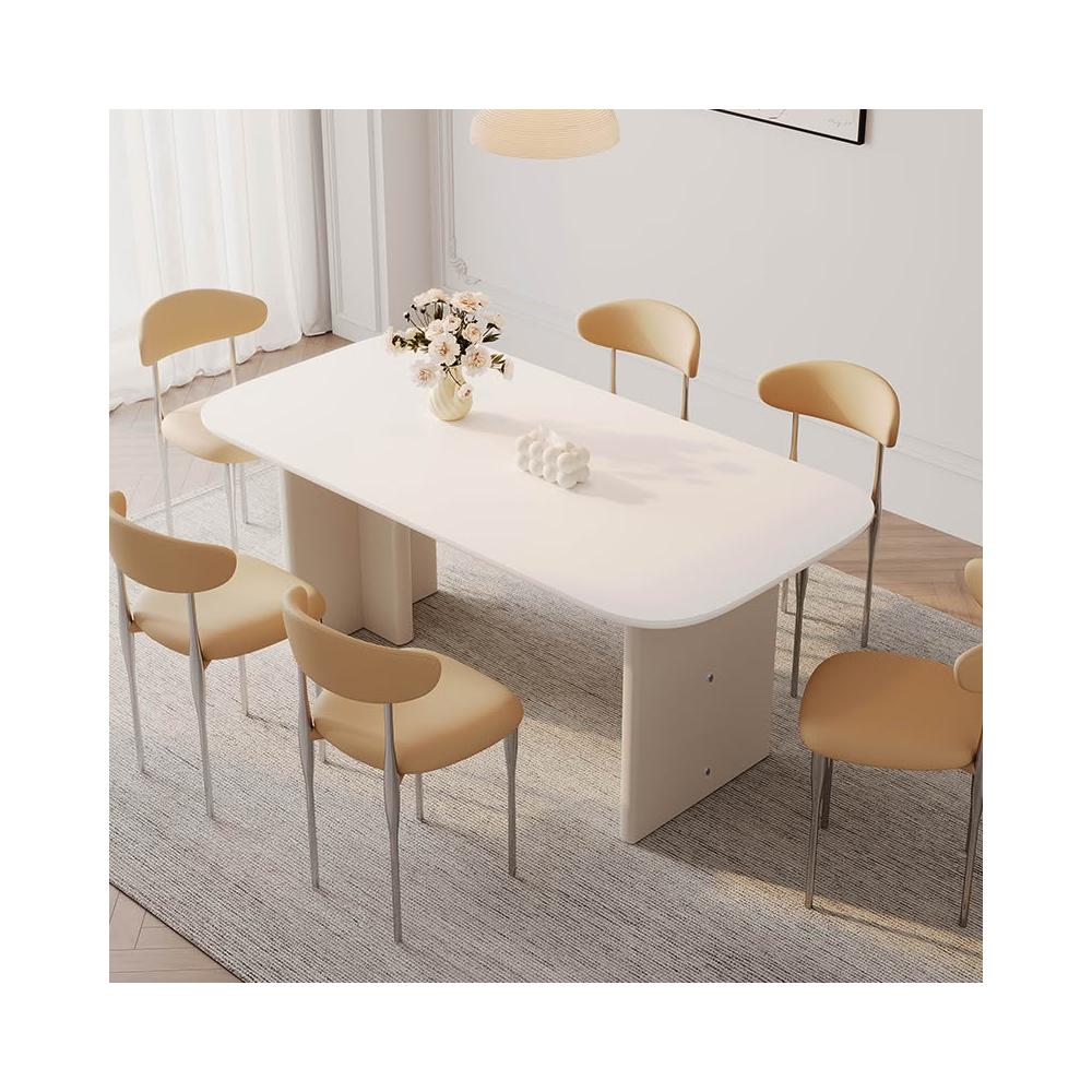 含稅/免運法式奶油風岩板餐桌/現代簡約小戶型家用/純白長方形實木餐桌椅組合 CZ-04