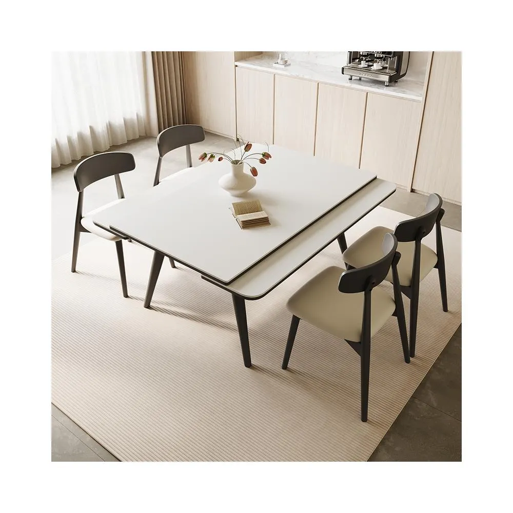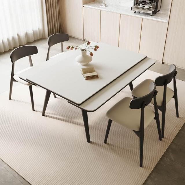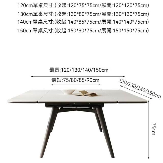 含稅/免運實木餐桌/現代簡約伸縮餐桌椅組合/可左右伸展變方桌兩用/亮光岩板餐桌 CZ-09