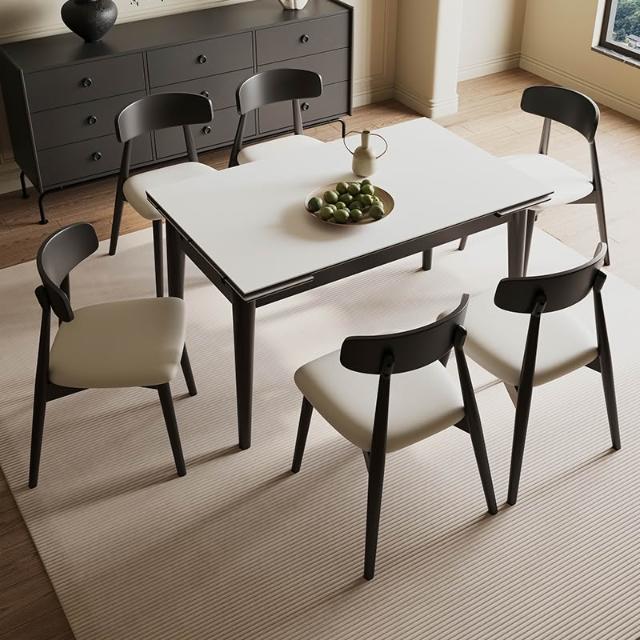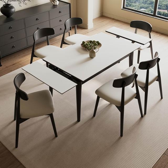 含稅/免運岩板伸縮折疊餐桌/餐桌椅組合/長方形小戶型現代簡約實木飯桌 CZ-10