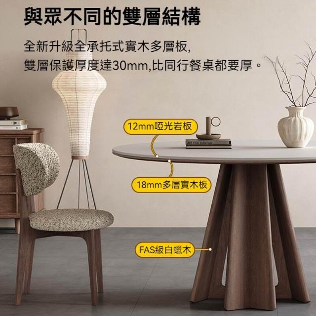 含稅/免運實木岩板餐桌/圓形家用胡桃色餐桌/極簡侘寂風實木圓餐桌帶轉盤 CZ-13