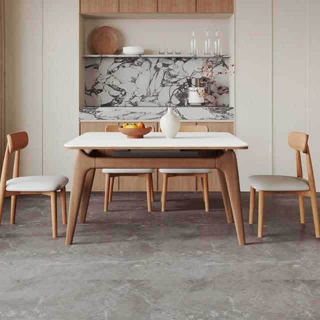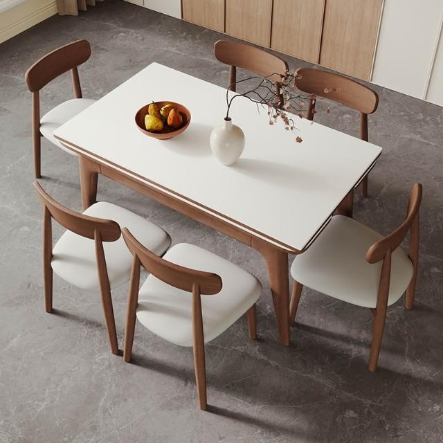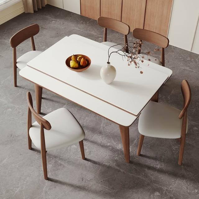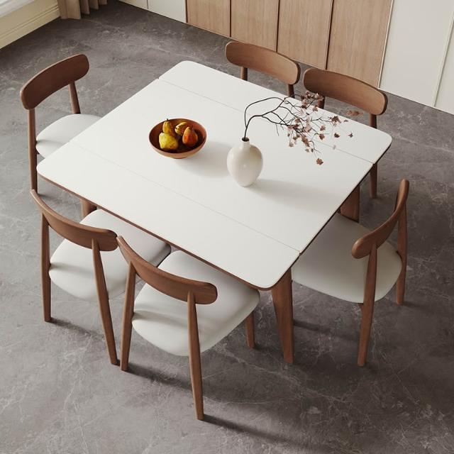 含稅/免運實木岩板餐桌椅組合/現代簡約亮光可變方桌兩用/長方形伸縮餐桌 CZ-14