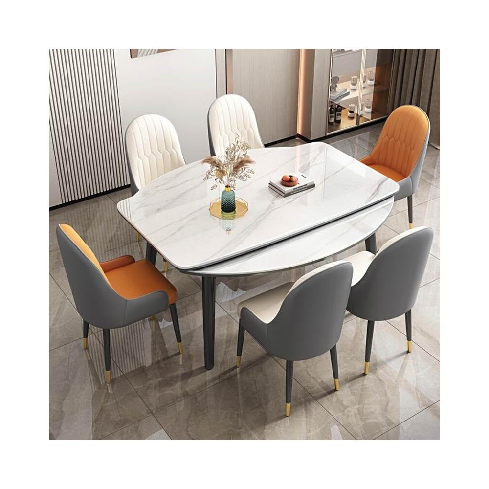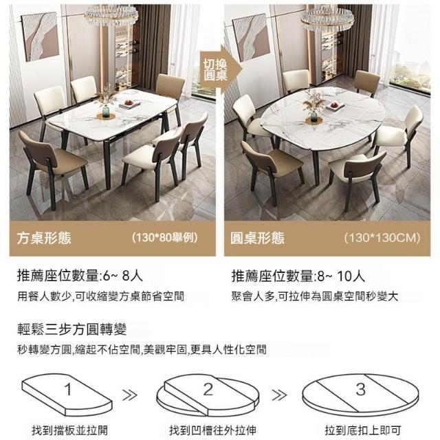含稅/免運岩板伸縮餐桌/現代輕奢可變圓桌/小戶型餐桌椅組合/一桌兩用省空間/防刮耐磨抗污設計 CZ-15