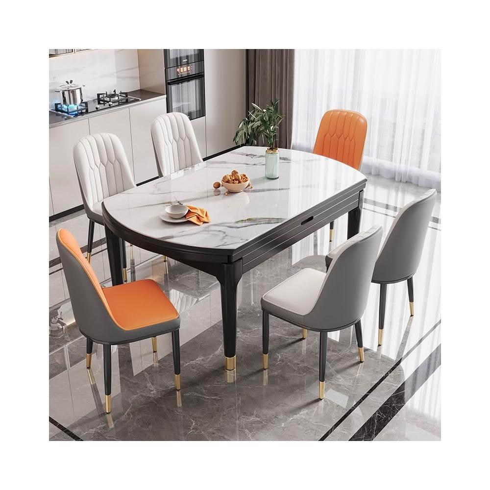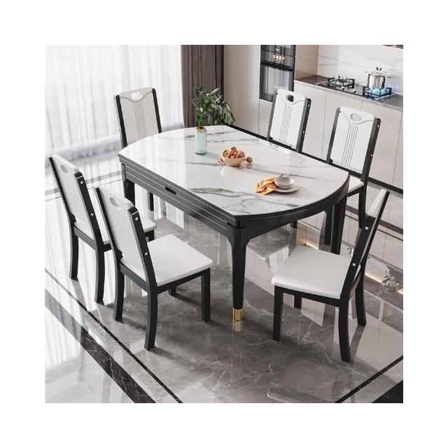 含稅/免運岩板伸縮餐桌椅組合/可折疊變圓桌/小戶型家用神器/防刮耐磨/一桌兩用省空間 CZ-19