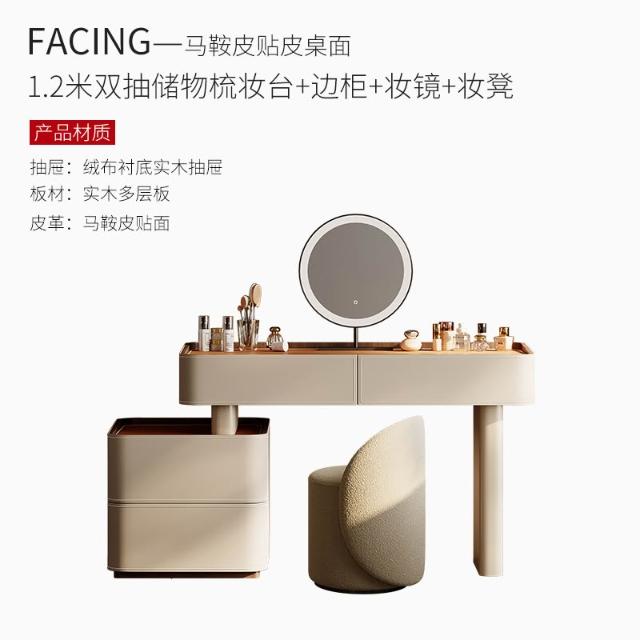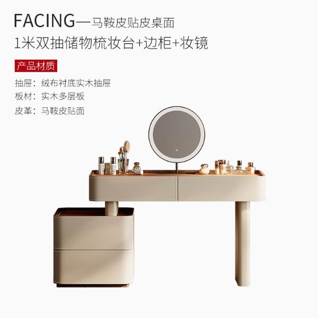 含稅/免運整裝發貨✨/馬鞍皮梳妝台/可伸縮化妝台斗櫃一體/多尺寸多顏色可選/大容量儲物梳妝台 SZT-9