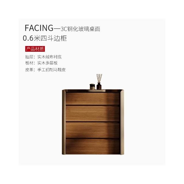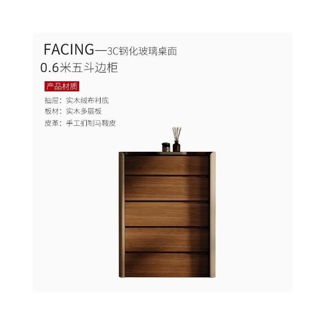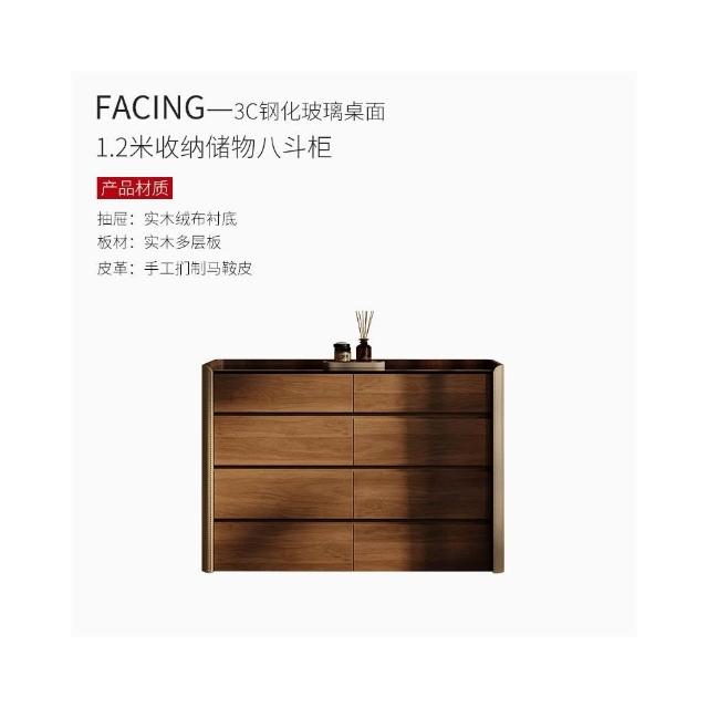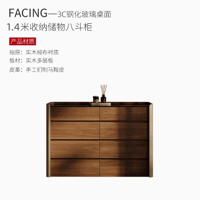 整裝發貨丨馬鞍皮斗櫃丨胡桃木紋五斗櫃丨大容量收納八斗櫃丨鋼化玻璃檯面設計丨多尺寸可選丨DG-14