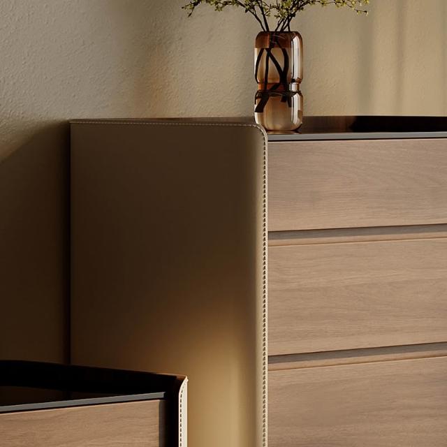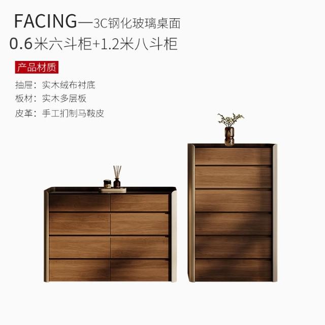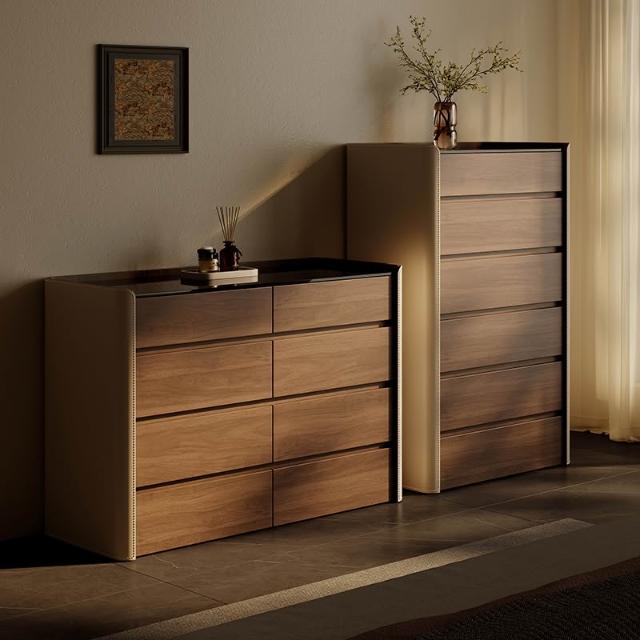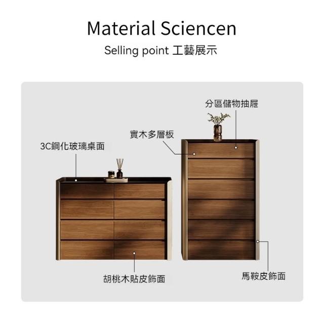 含稅/免運整裝發貨✨/馬鞍皮斗櫃/胡桃木紋五斗櫃/大容量收納八斗櫃/鋼化玻璃檯面設計/多尺寸可選 DG-14