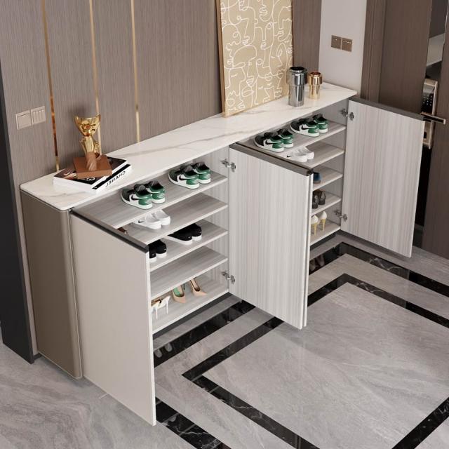 含稅/免運【整裝發貨】極簡鞋櫃馬鞍皮現代簡約家用實木入戶門廳櫃大容量儲物櫃高端鞋櫃 XG-20