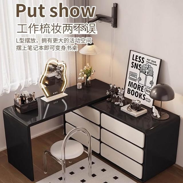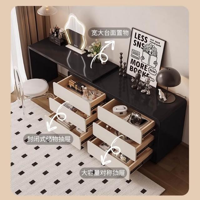 含稅/免運整裝發貨✨/實木梳妝台/可伸縮一體法式復古風臥室收納化妝桌/床尾儲物鬥櫃 SZT-16