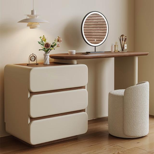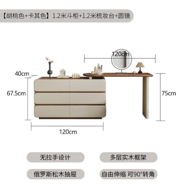 含稅/免運整裝發貨✨/可伸縮實木梳妝台/斗櫃化妝台一體/臥室小戶型化妝桌/胡桃木紋檯面加固加粗桌腿 SZT-27