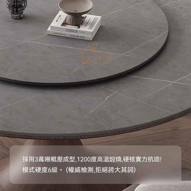 含稅/免運實木岩板圓形餐桌/帶轉盤餐桌椅組合/現代簡約胡桃色實木圓桌 CZ-25