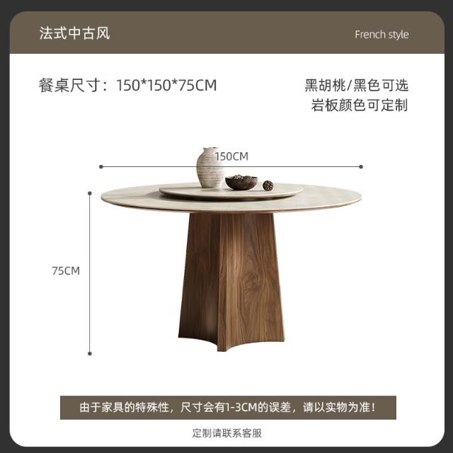 含稅/免運法式實木餐桌/圓形帶轉盤/家用餐廳小戶型/胡桃色侘寂中古風岩板圓桌 CZ-26