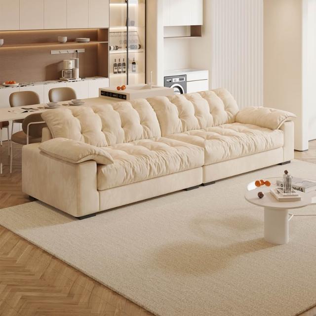 含稅/免運【多顏色可選】奶油風布藝沙發客廳小戶型簡約現代輕奢磨砂布直排家用雲朵沙發 BSF-13