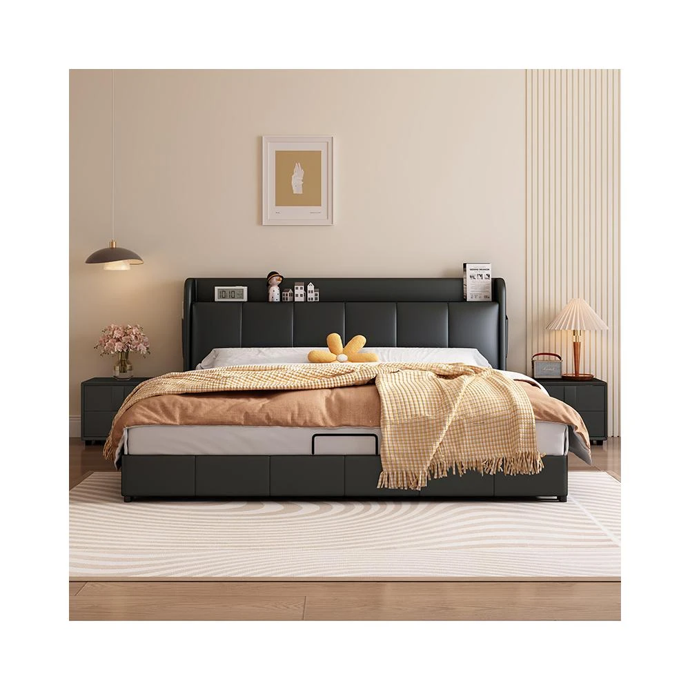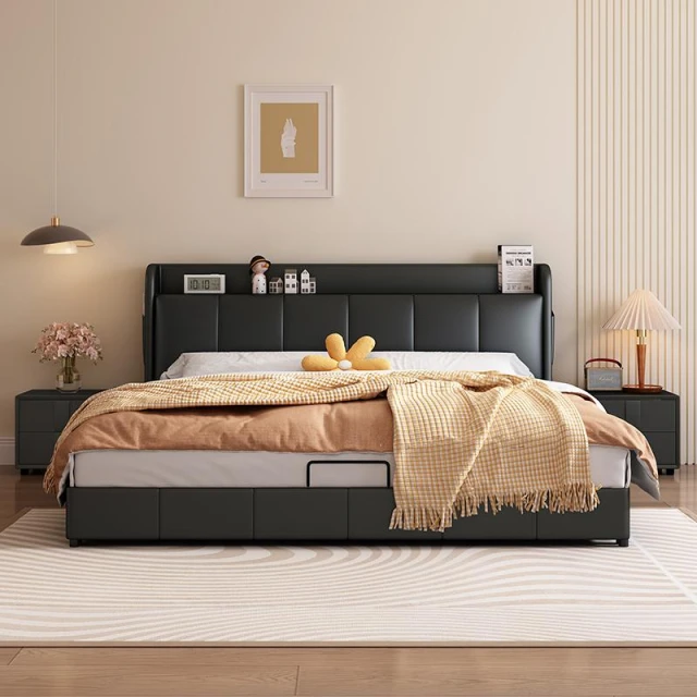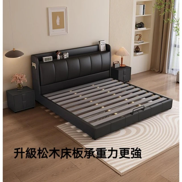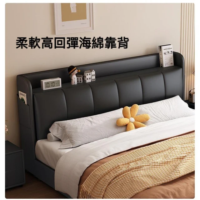 含稅/免運真皮床/现代简约主卧大床/1.8米双人床/高端大气软包实木床/婚床/ PC-11