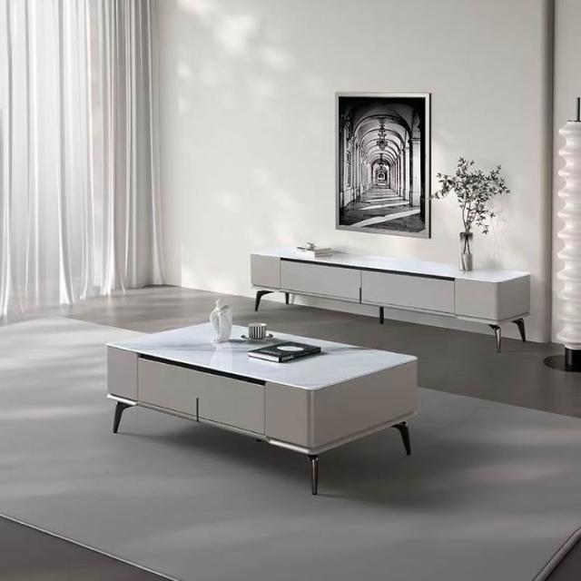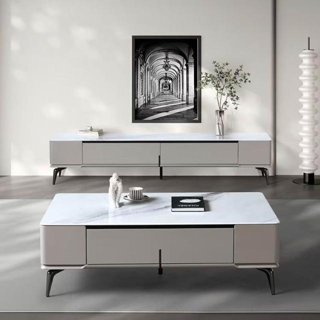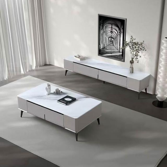 含稅/免運整裝發貨✨/微晶石茶几電視櫃/現代簡約電視櫃/意式輕奢/家用小戶型電視櫃茶几 CJ-16
