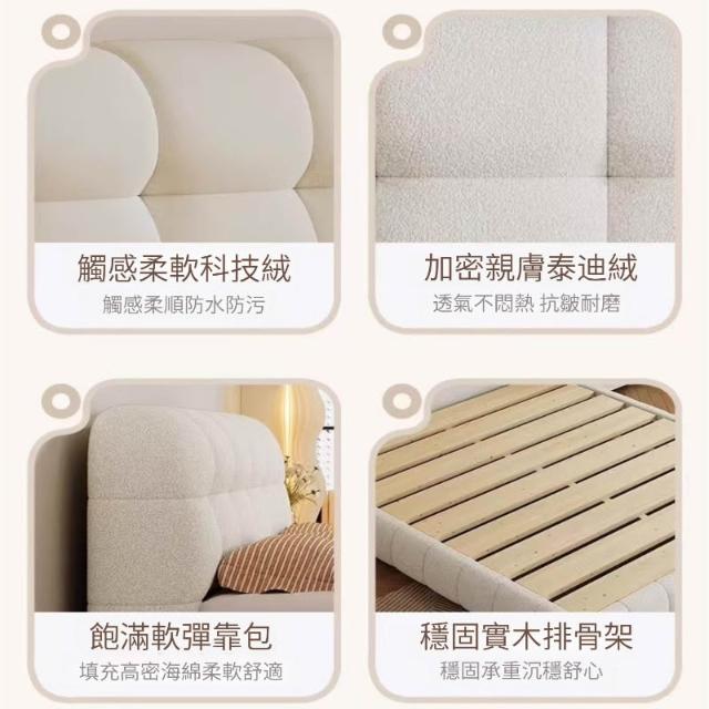 含稅/免運奶油風布床/布藝床/意式網紅奶油風/小戶型北歐風格/泡芙床/雙人床 BC-1
