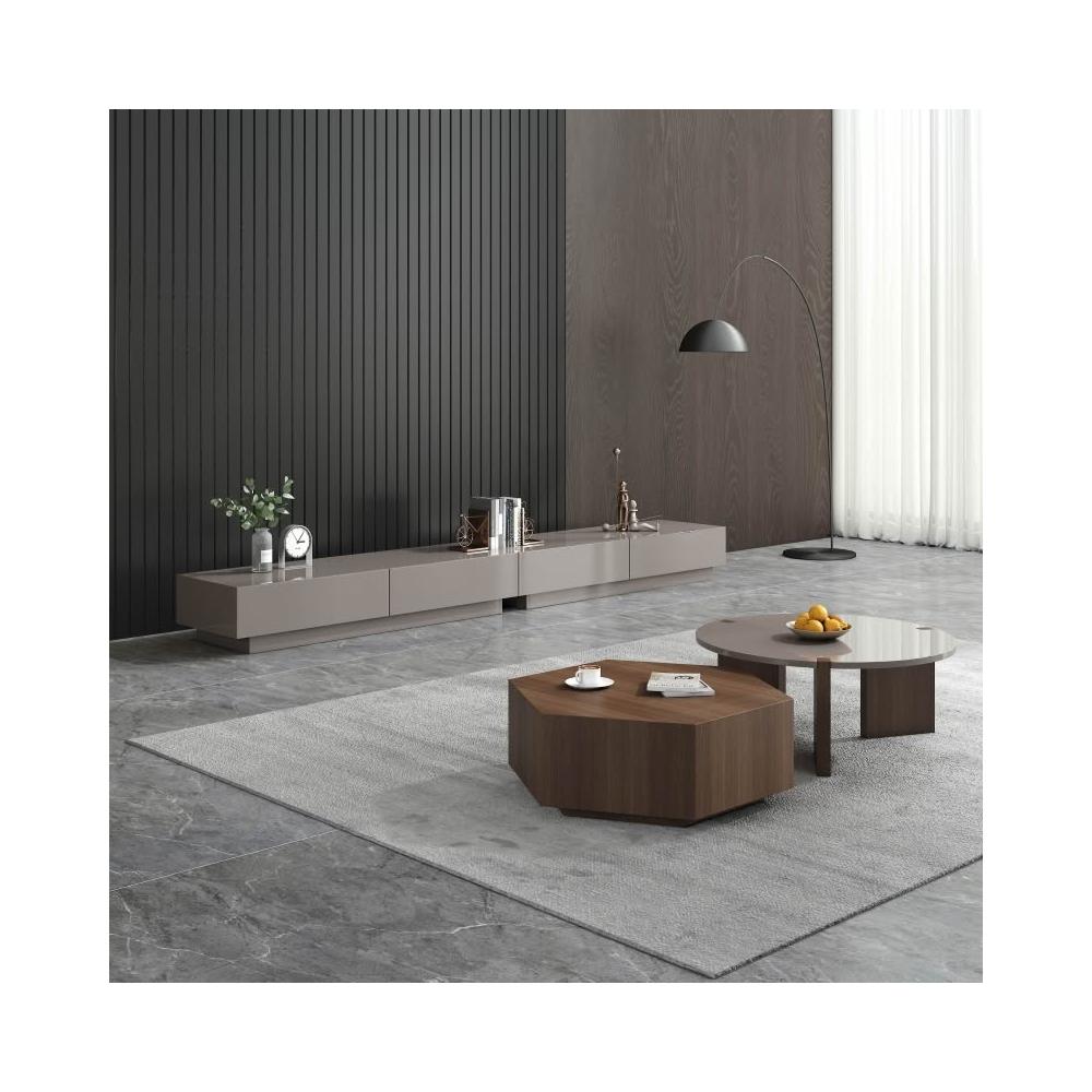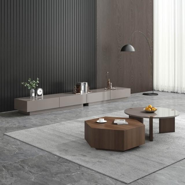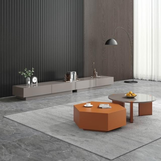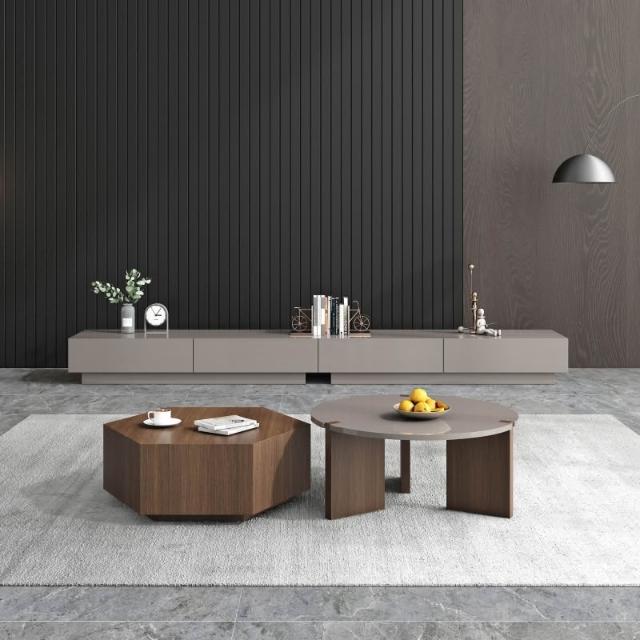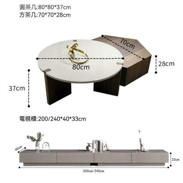 含稅/免運整裝發貨✨/意式極簡實木圓形茶几/輕奢烤漆茶几電視櫃組/藝術辦公室茶几組合/現代簡約家用茶几 CJ-20