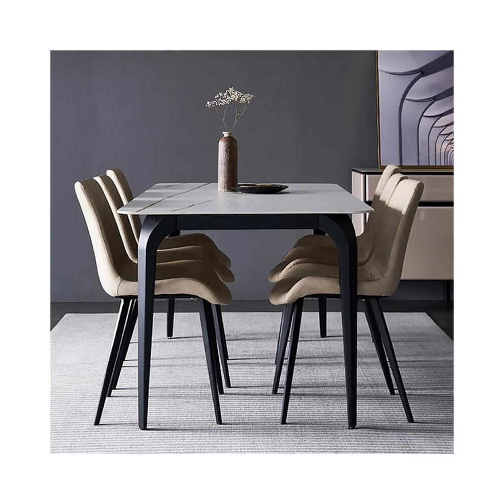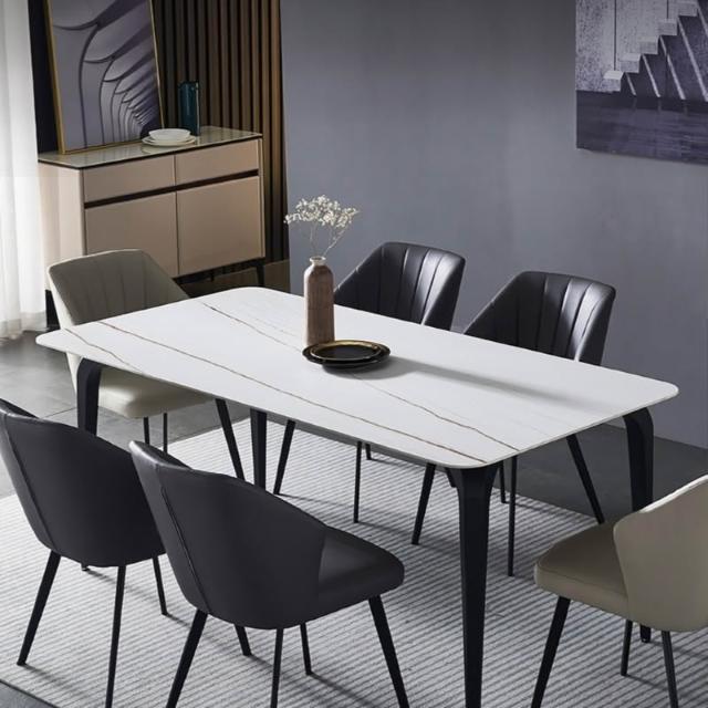 含稅/免運意式輕奢亮光岩板餐桌/家用小戶型長方形飯桌/現代簡約餐桌椅組合 CZ-31