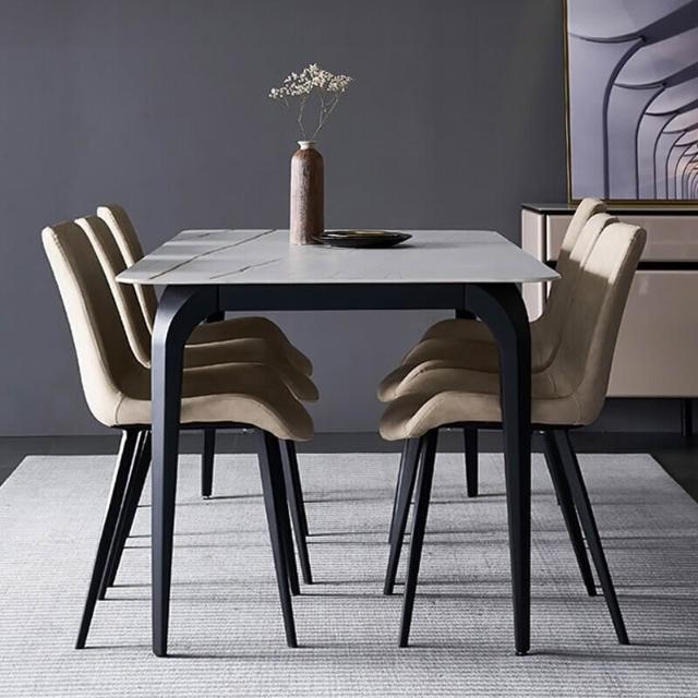 含稅/免運意式輕奢亮光岩板餐桌/家用小戶型長方形飯桌/現代簡約餐桌椅組合 CZ-31