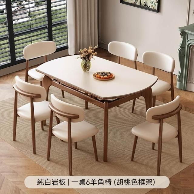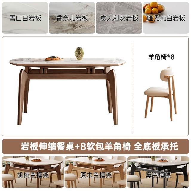 含稅/免運伸縮岩板餐桌/現代簡約實木飯桌/方圓兩用餐桌椅組合/多顏色岩板可選 CZ-35