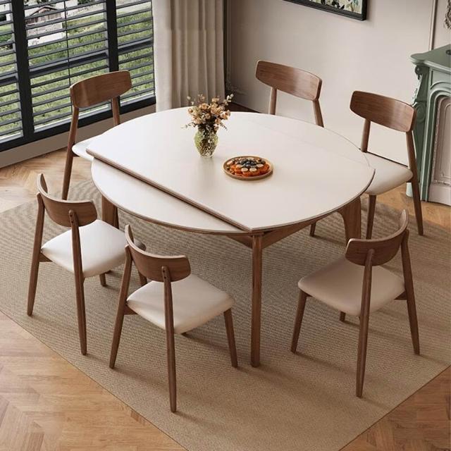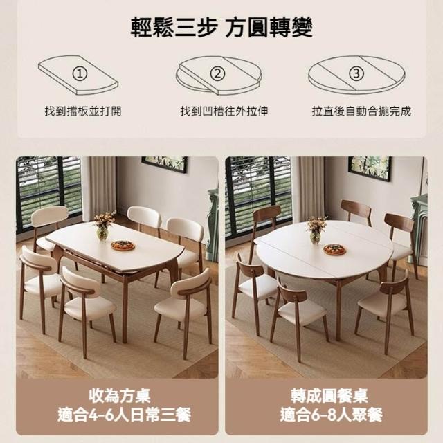 含稅/免運伸縮岩板餐桌/現代簡約實木飯桌/方圓兩用餐桌椅組合/多顏色岩板可選 CZ-35