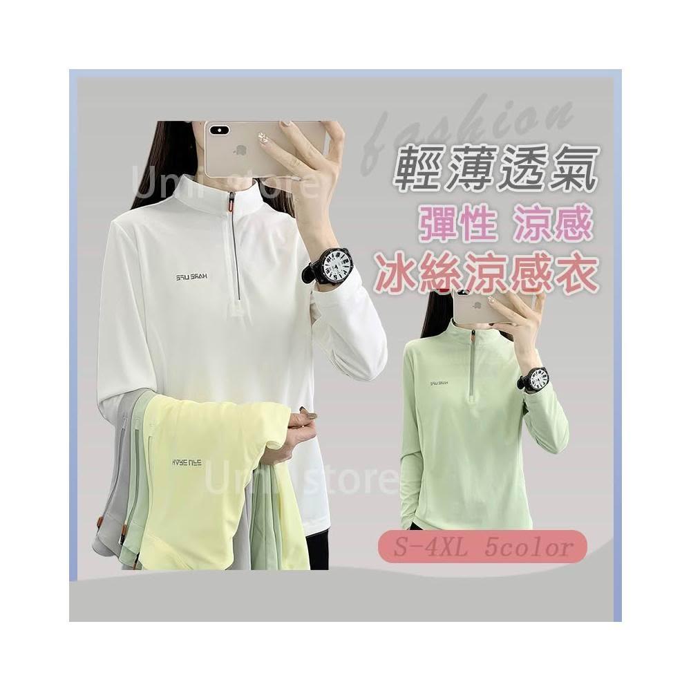 運動上衣女夏季寬鬆網眼透氣薄款長袖t恤吸濕排汗衣彈性立領速乾顯瘦健身衣夏天純色大呎碼冰絲涼感衣女生修身休閒衣服排汗衫現貨