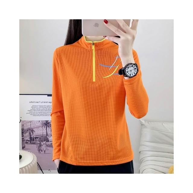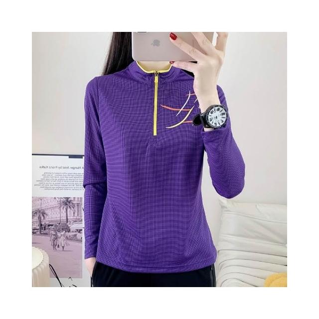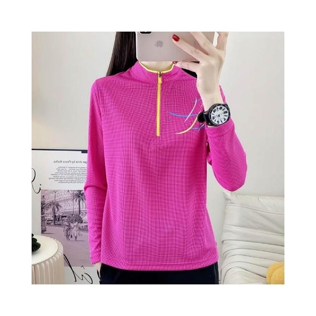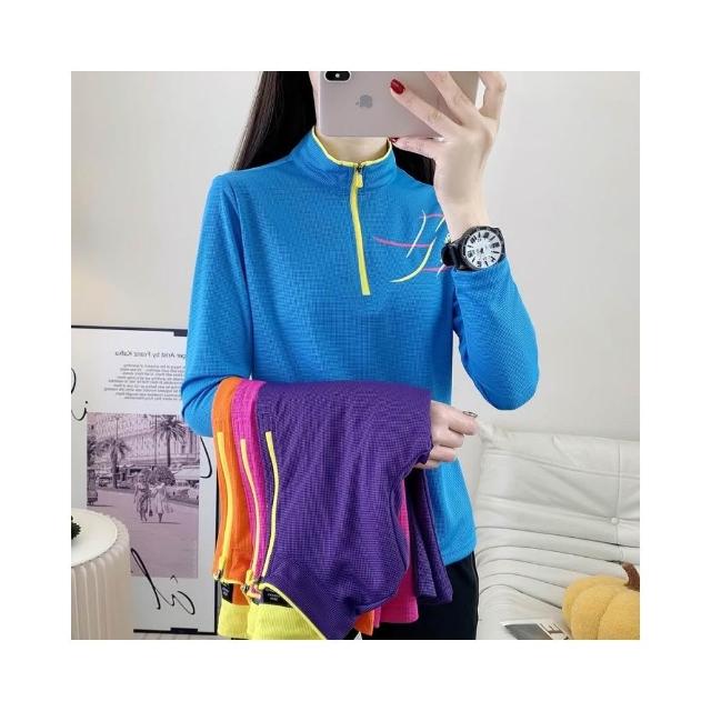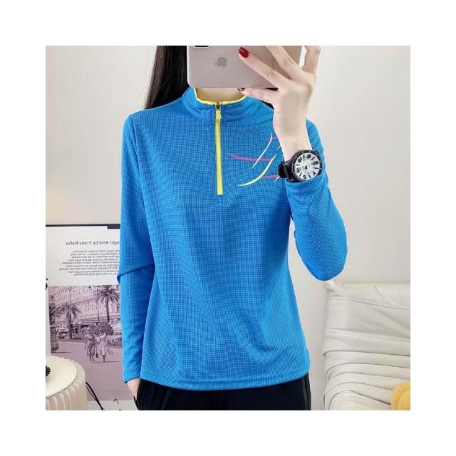 排汗機能長袖運動衫女 超彈力透氣 機能衣 排汗衫女 涼感衣 速乾立領登山長袖T恤 騎自行車 釣魚 登山 團體服 吸濕排汗