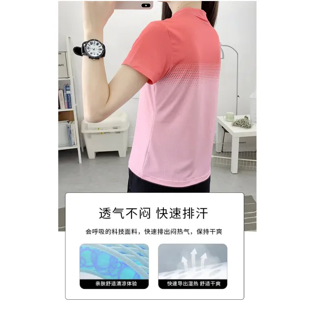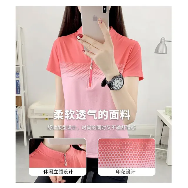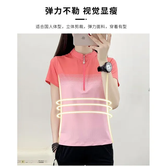 運動上衣女夏季修身透氣薄款短袖t恤吸濕排汗衫彈性立領速乾顯瘦健身衣夏天大呎碼時尚百搭冰絲涼感衣網眼休閒衣服女生跑步排汗衣