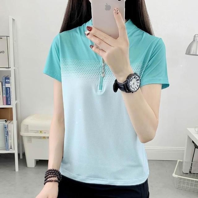 運動上衣女夏季修身透氣薄款短袖t恤吸濕排汗衫彈性立領速乾顯瘦健身衣夏天大呎碼時尚百搭冰絲涼感衣網眼休閒衣服女生跑步排汗衣