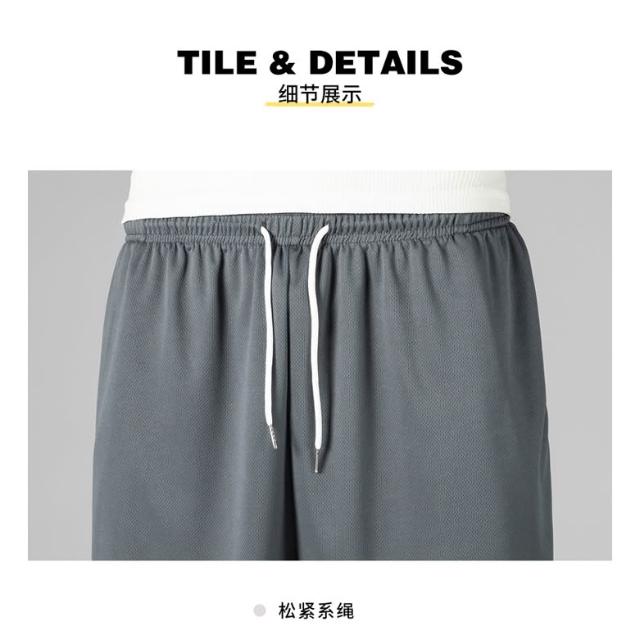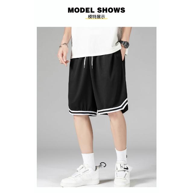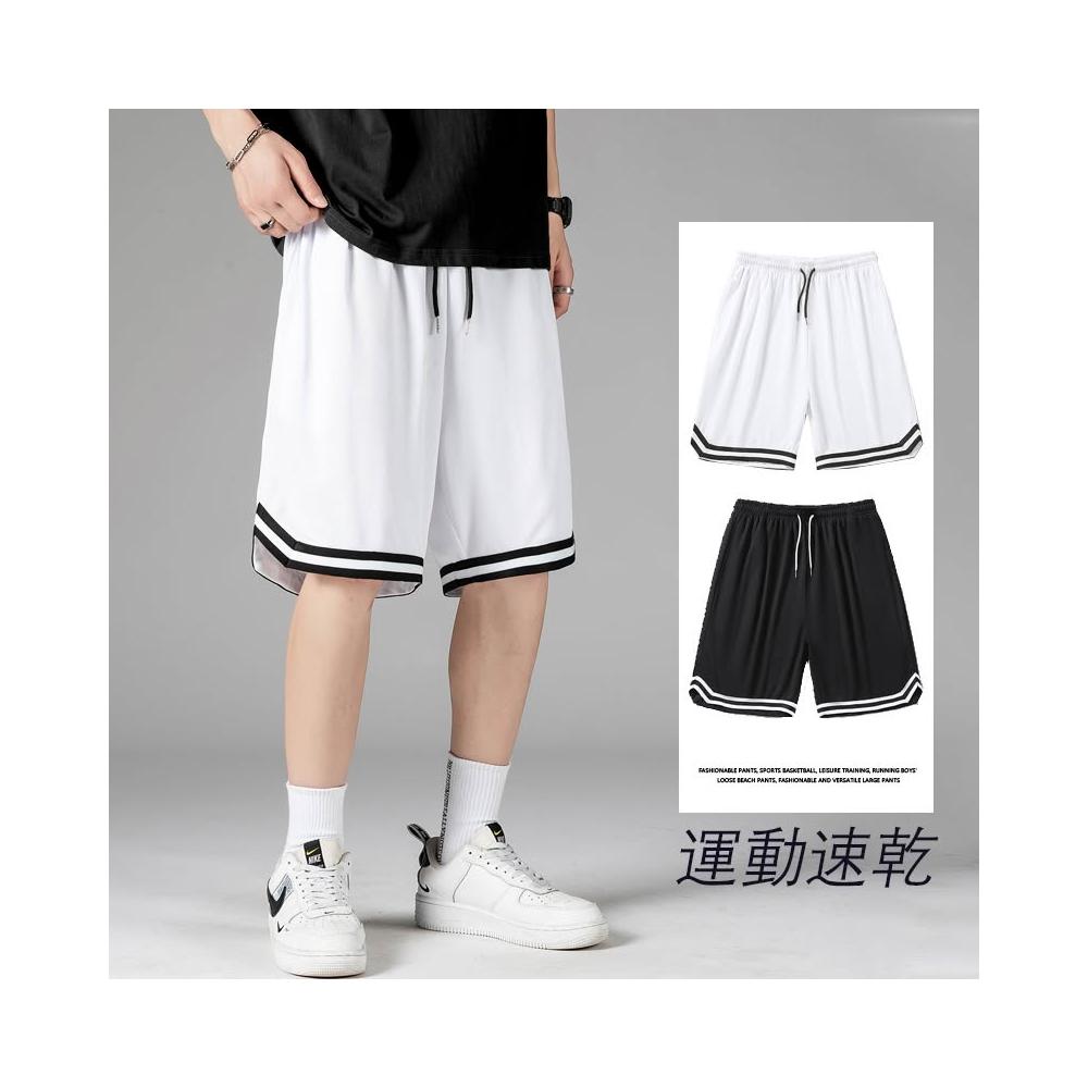 籃球褲男夏季寬鬆網眼透氣男生運動短褲訓練跑步健身速乾籃球短褲夏天涼感彈性冰絲五分褲休閒白色涼爽5分寬褲直筒鬆緊涼感褲