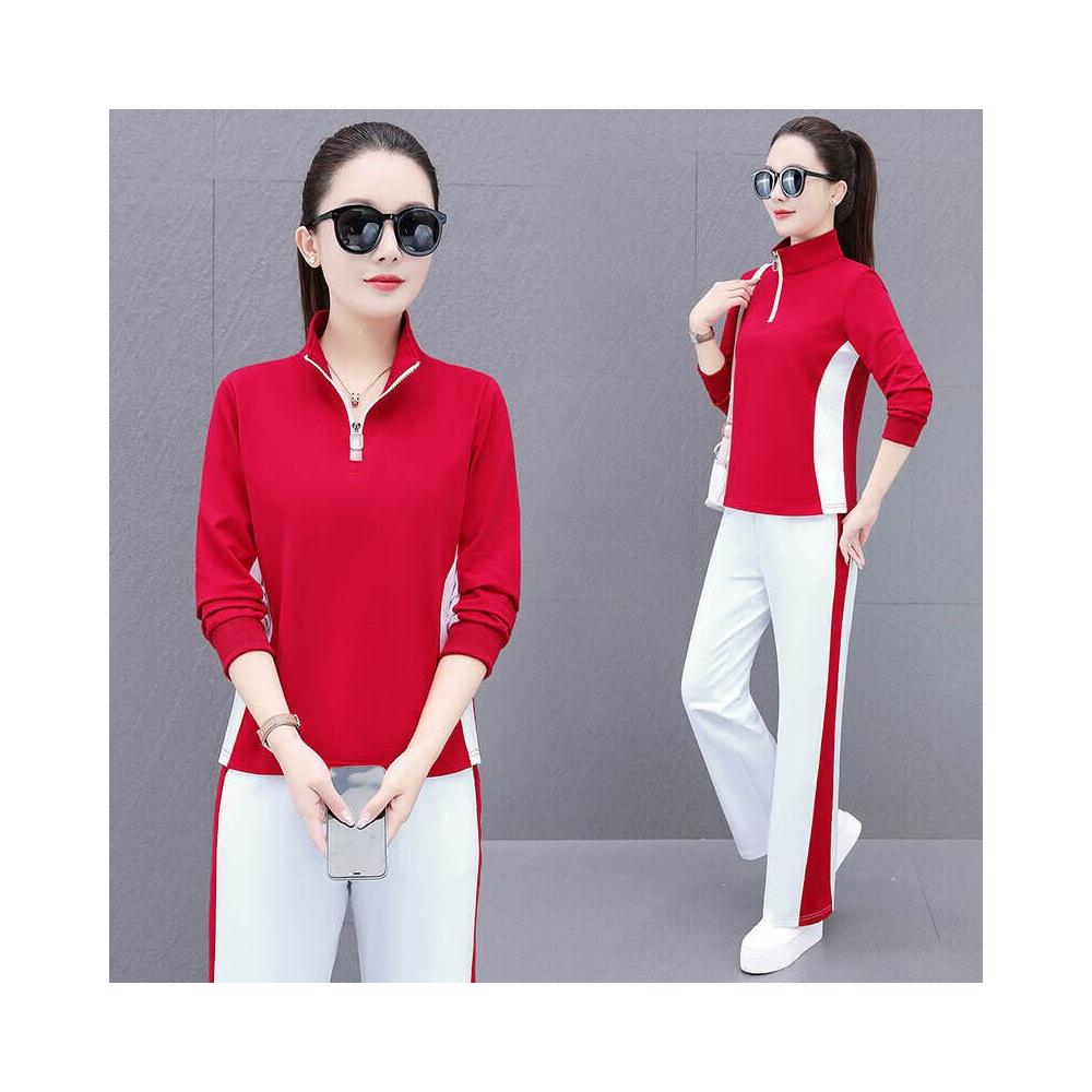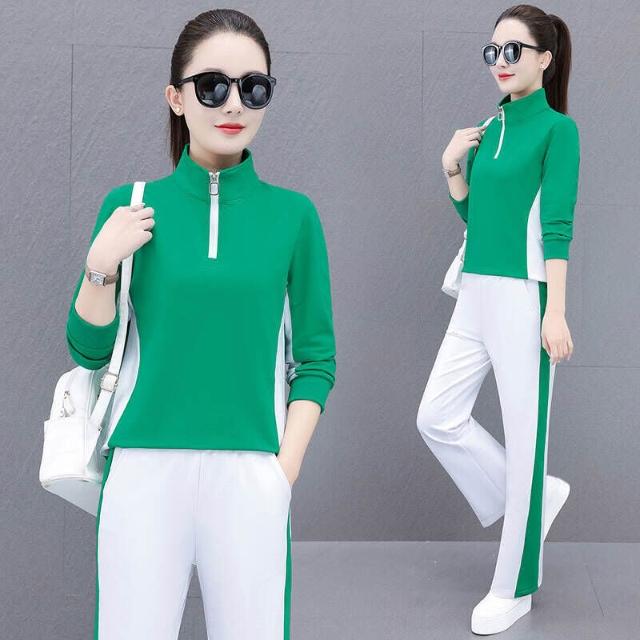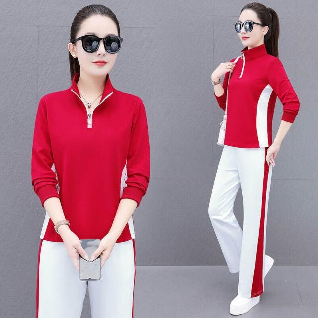 運動套裝女裝春夏套裝休閒服瑜伽服運動健身通勤套裝 印花時尚新款開衫拉鏈立領運動套裝女春秋女休閑褲裝運動服修身戶外運動登山服高爾夫球服