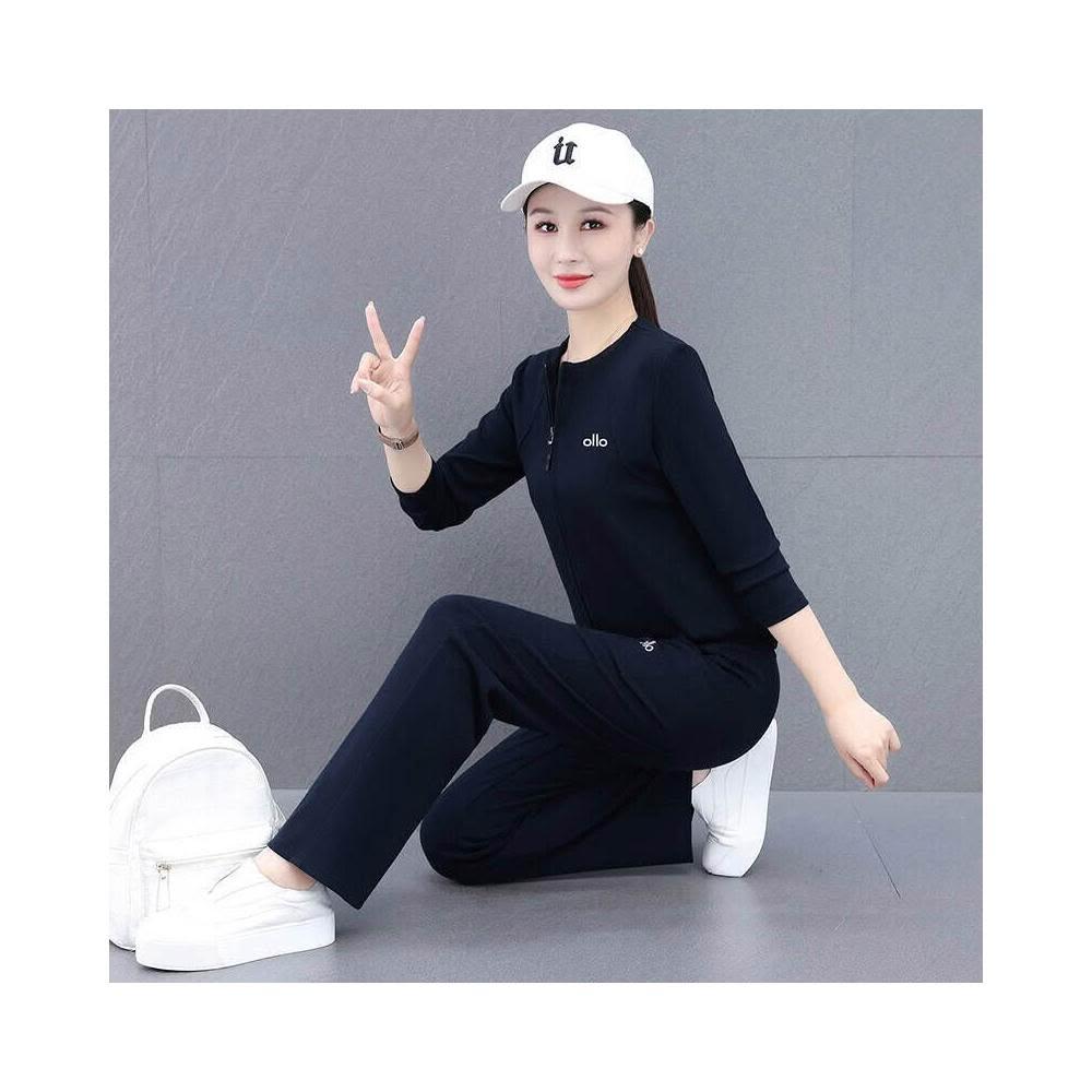運動套裝女裝春夏通勤套裝套裝休閒服瑜伽服運動健身開衫拉鏈長袖套裝女春秋女休閑褲裝運動服修身戶外運動登山服高爾夫球服