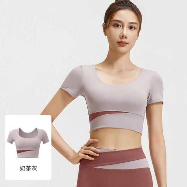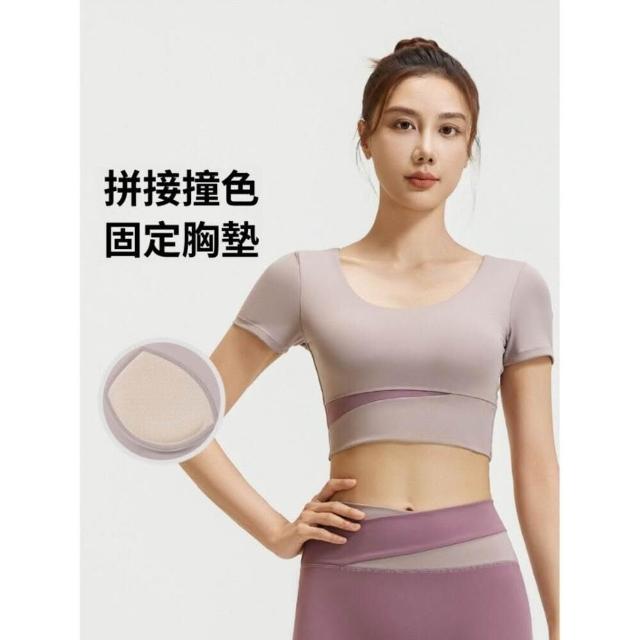 涼感衣冰絲衣拼接撞色瑜伽服套裝防震聚攏短袖運動美背高腰交叉雙色運動褲 瑜伽服無痕涼感薄款透氣健身背心無鋼圈內衣一體式固定不跑杯調整型減震棉質蠶絲聚攏抹胸背心