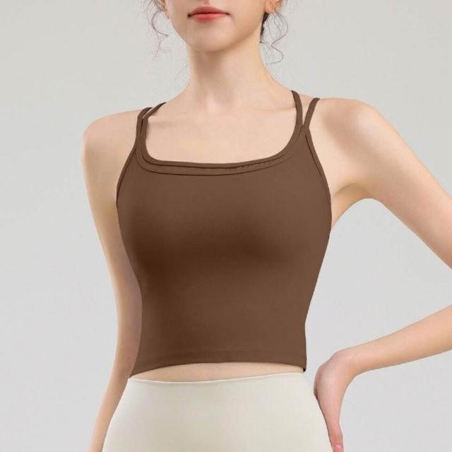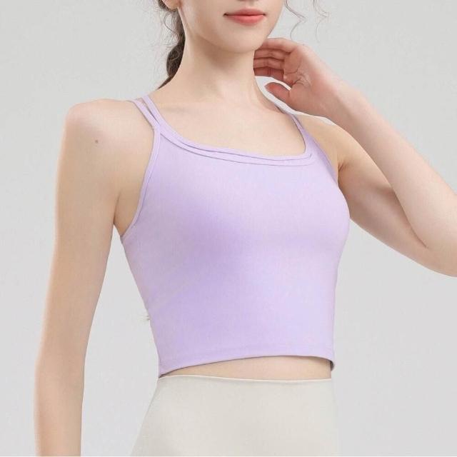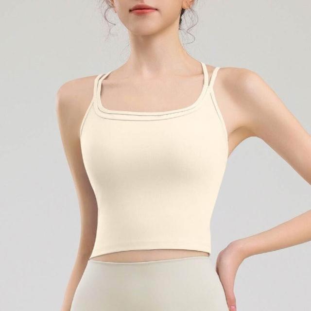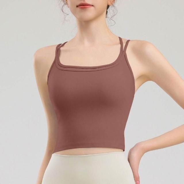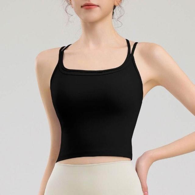 背心吊帶美背運動內衣內搭上衣健身瑜伽背心性感吊帶露背帶胸墊防震外穿細肩帶運動內衣美背健身一體式文胸瑜伽服無痕涼感薄款透氣健身背心無鋼圈內衣一體式固定不跑杯調整型減震聚攏抹胸背心