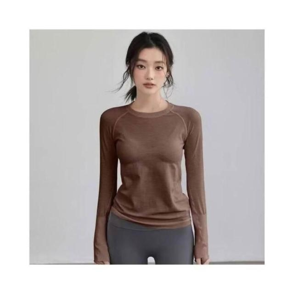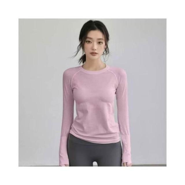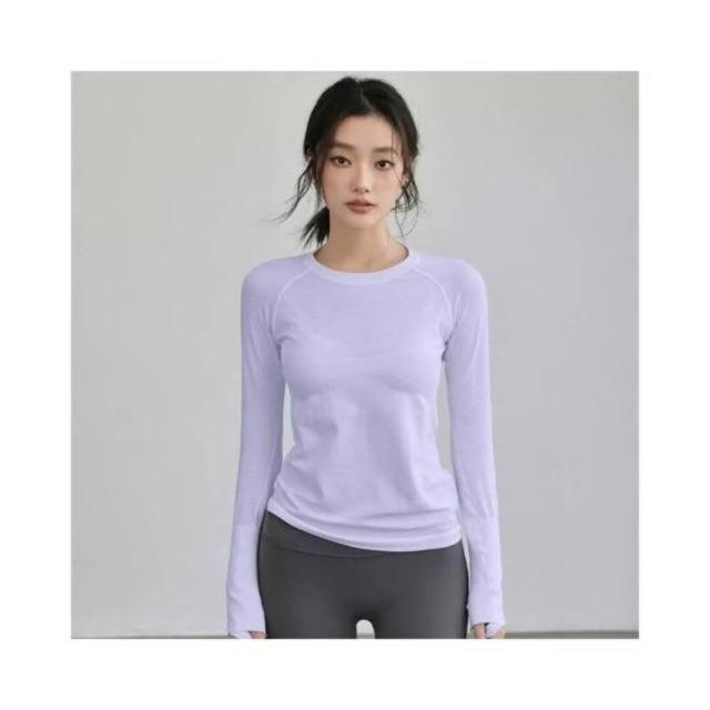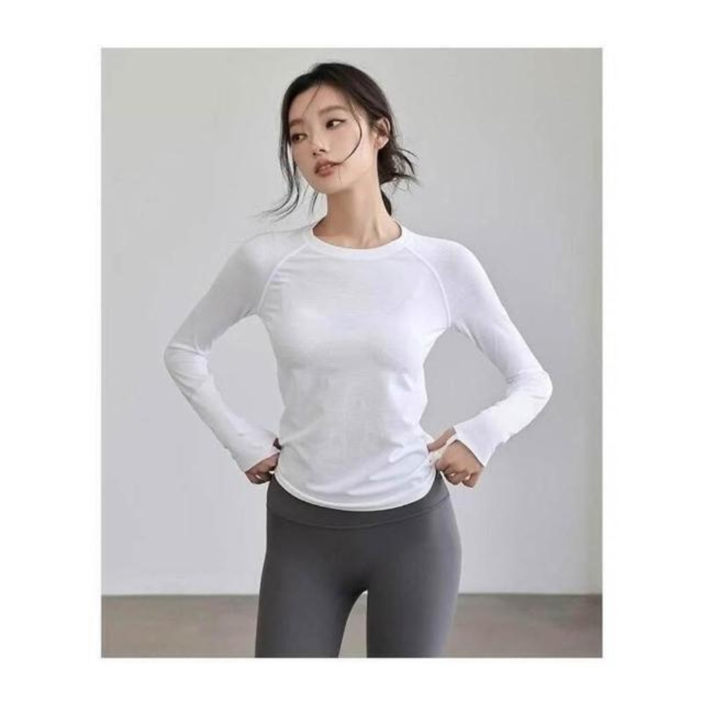 速乾長袖上衣女素色寬鬆防曬上衣吸濕排汗衣瑜伽慢跑訓練健身運動冰絲涼感修身彈性T恤輕薄透氣夏季薄款休閒春秋保暖冬季打底衫女