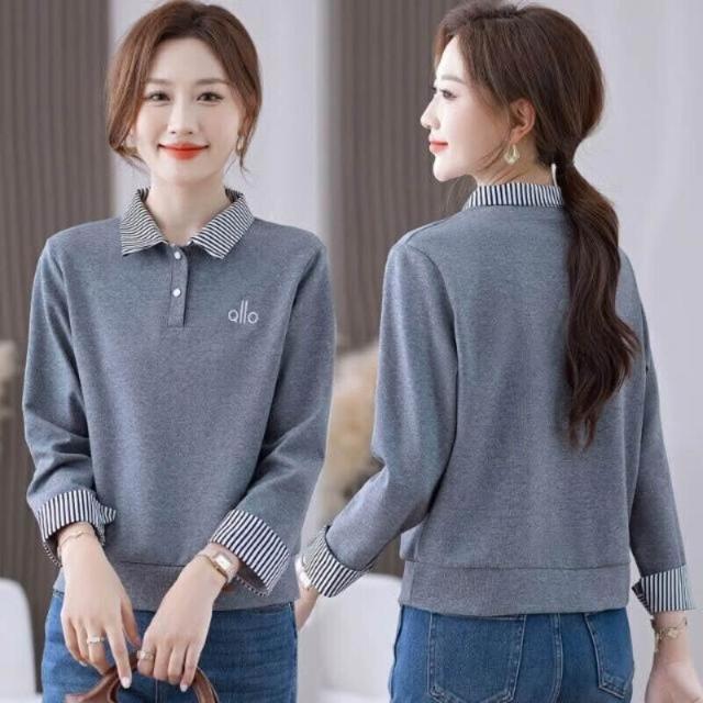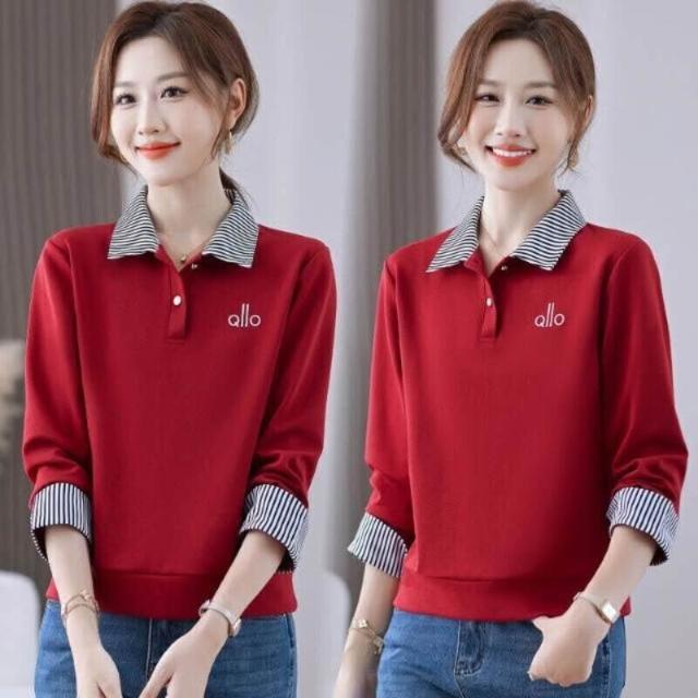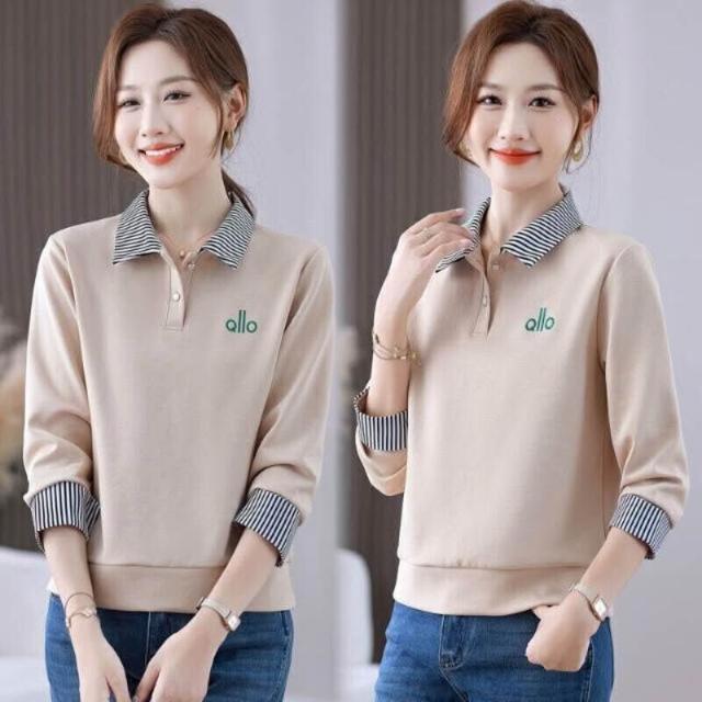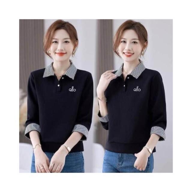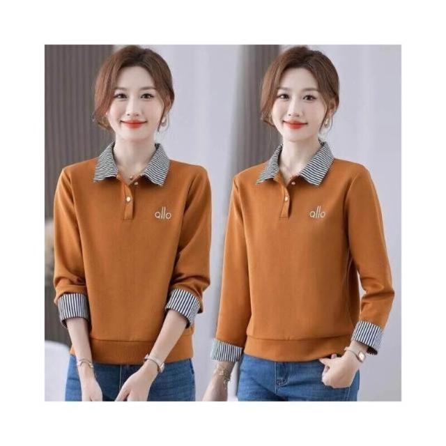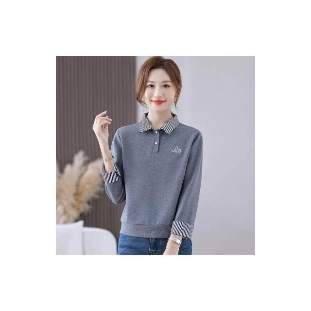 長袖T恤女Polo衫假兩件春秋冬季上衣薄款翻領內搭保暖打底衫素色棉質大學T休閒寬鬆運動工作氣質顯瘦百搭通勤媽媽裝中年長袖