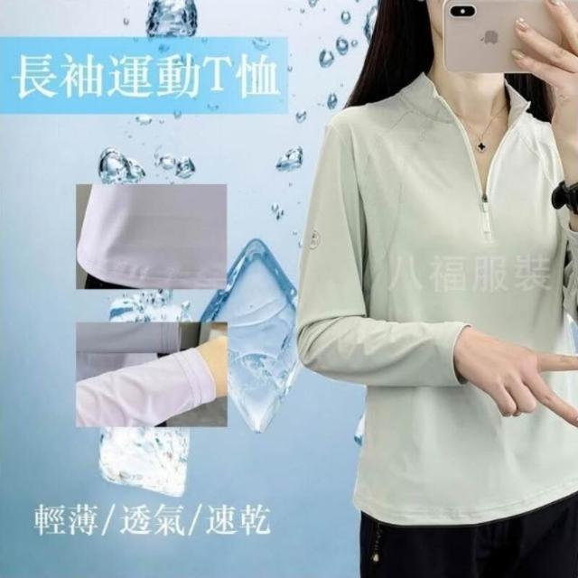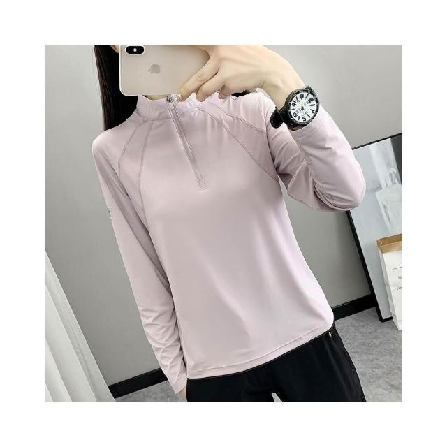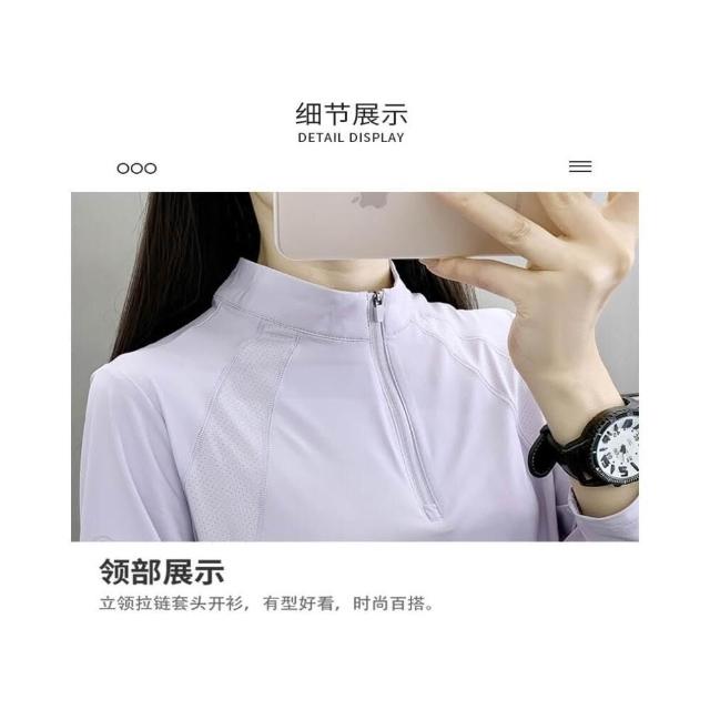 T恤女春夏秋季運動吸濕排汗長袖速乾健身衣戶外速幹運動休閑登山徒步透氣彈力立領長袖涼感拉鏈防紫外線超輕防風登山徒步野營上衣