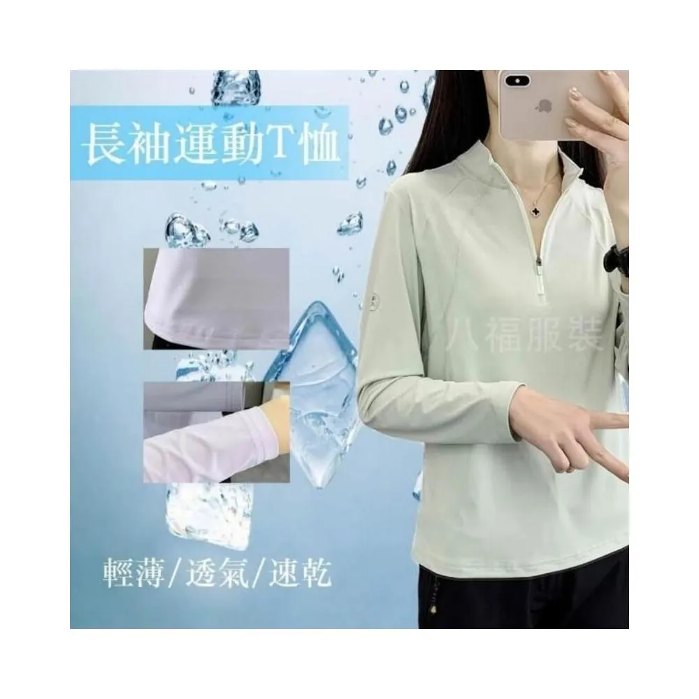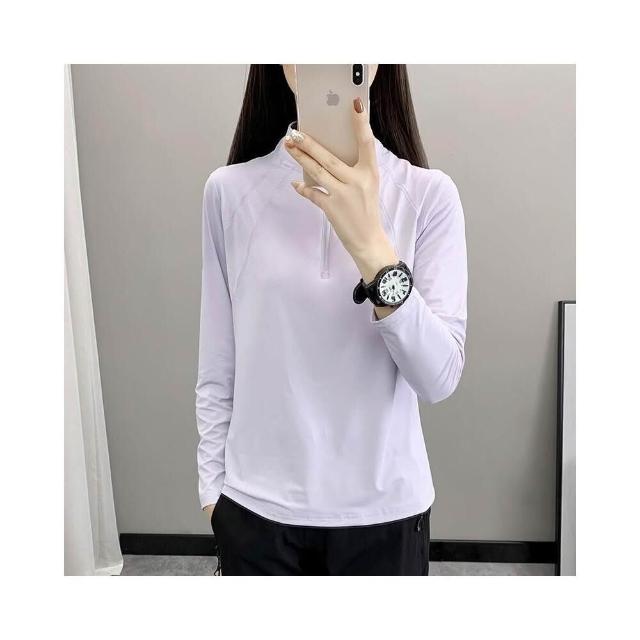 T恤女春夏秋季運動吸濕排汗長袖速乾健身衣戶外速幹運動休閑登山徒步透氣彈力立領長袖涼感拉鏈防紫外線超輕防風登山徒步野營上衣
