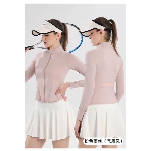 防曬涼感衣戶外運動外套瑜伽小蠻腰立領冰絲防曬衣女防曬衣夏天外套防曬衣透氣爽感防曬衣涼感外套連帽防曬外套蕾絲瑜伽運動防曬衣