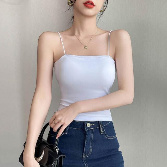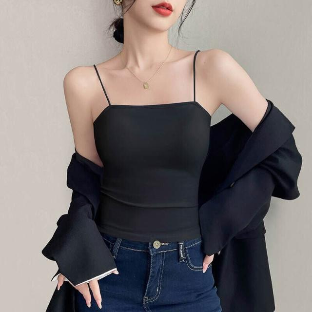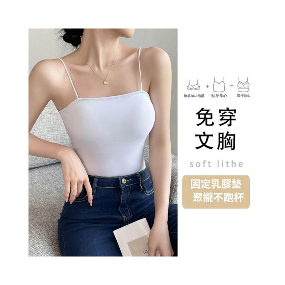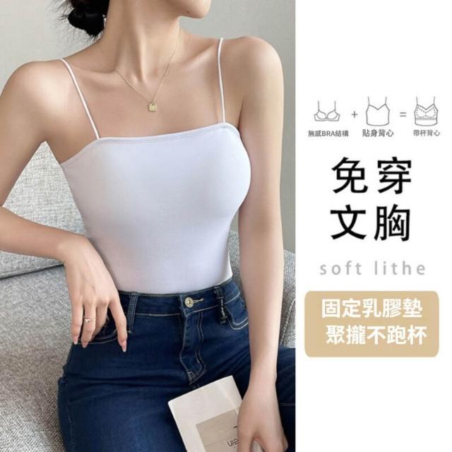 背心吊帶小高領上衣瑜伽服健身修身無袖T恤運動內衣內搭上衣棉質T恤美背吊帶背心女內搭夏帶胸墊文胸一體內衣外穿長款黑色打底上衣