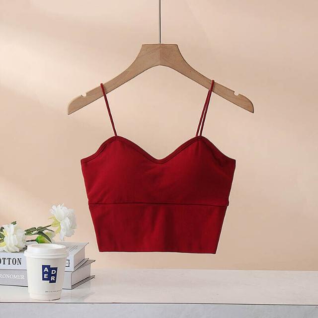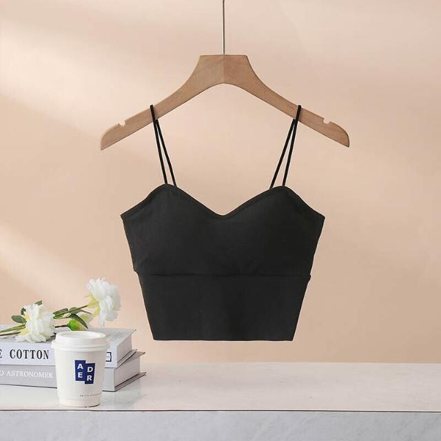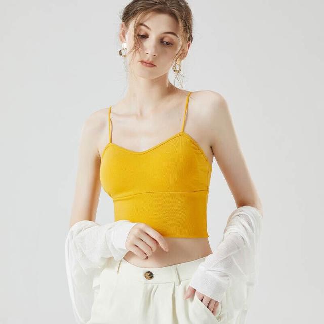 小吊帶背心女帶胸墊內搭外穿U型美背文心女夏內搭斜肩帶胸墊吊帶掛脖打底上衣外穿內衣內搭文胸瑜伽背心美背女士運動健身跑步室內訓練長袖美背背心T恤高彈含胸墊