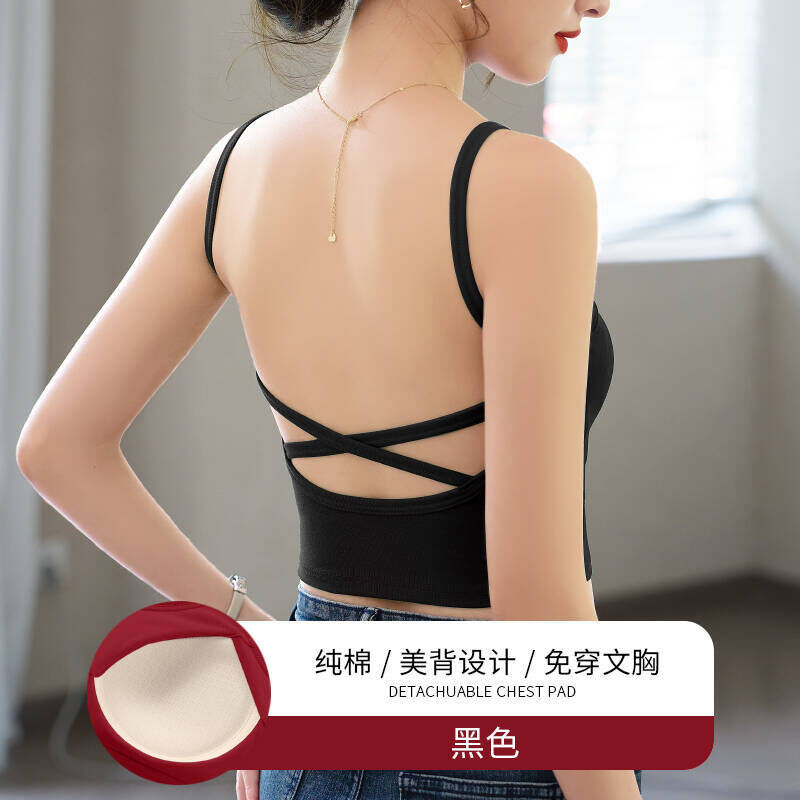 源頭工廠主推爆款甜辣小吊帶背心女帶胸墊內搭U型美背文胸一體打底外穿多巴胺上衣內衣內搭文胸瑜伽背心美背女士運動健身跑步室內訓練長袖美背背心T恤高彈含胸墊