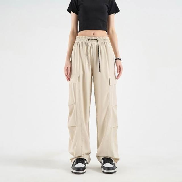 涼夏 冰絲褲 夏季冰絲3色工裝褲 男女同款防潑水休閑褲 大碼束腳衝鋒褲 戶外山系情侶款傘兵褲