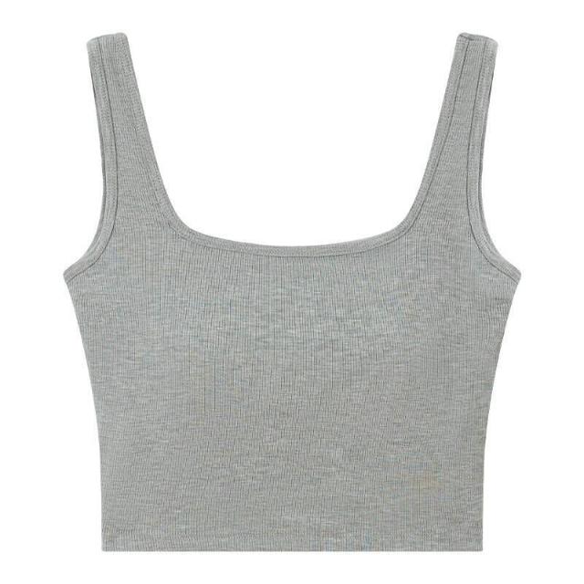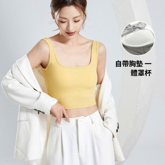 背心夏季帶胸墊美背吊帶背心女內搭方領打底無袖上衣辣妹性感露背背瑜伽服無痕涼感薄款透氣健身背心無鋼圈內衣一體式固定不跑杯調整型減震聚攏抹胸背心