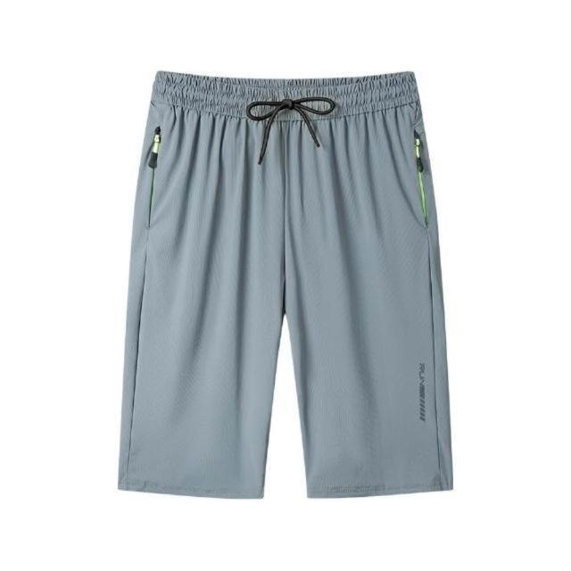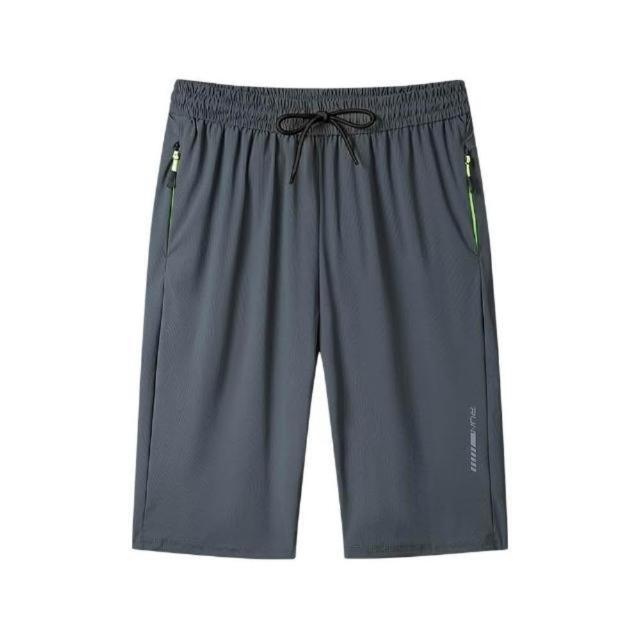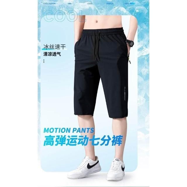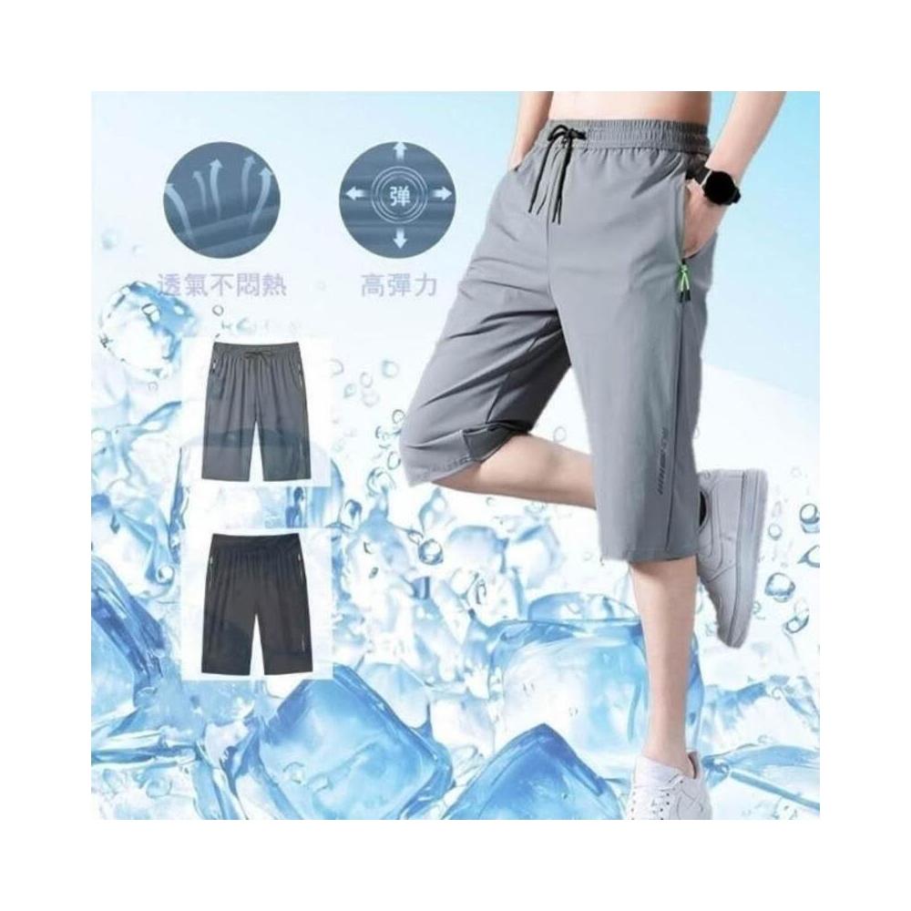 服裝運動短褲男夏天冰絲涼感七分褲中青年速乾休閒褲大尺碼鬆緊帶男士超薄透氣沙灘褲時尚寬鬆直筒平口高彈力夏季快速降溫寬褲