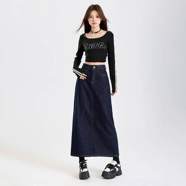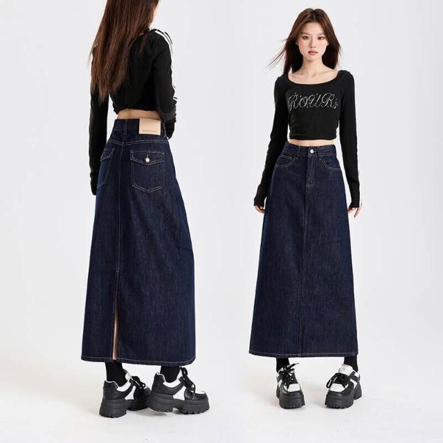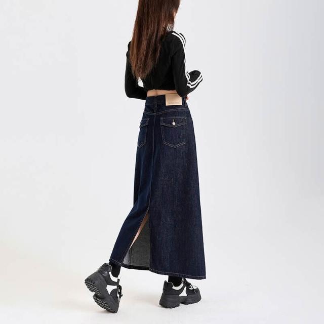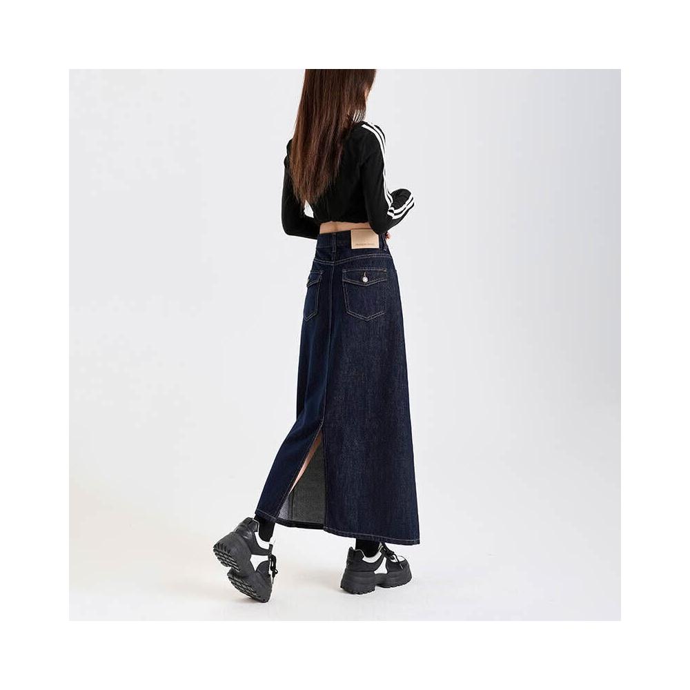 裙子半身裙長裙丹寧藍高腰開叉牛仔半身裙女春秋中長款顯瘦包臀裙子辣妹通勤牛仔長裙女韓版顯瘦直筒高腰開叉復古百搭遮肉日常長裙