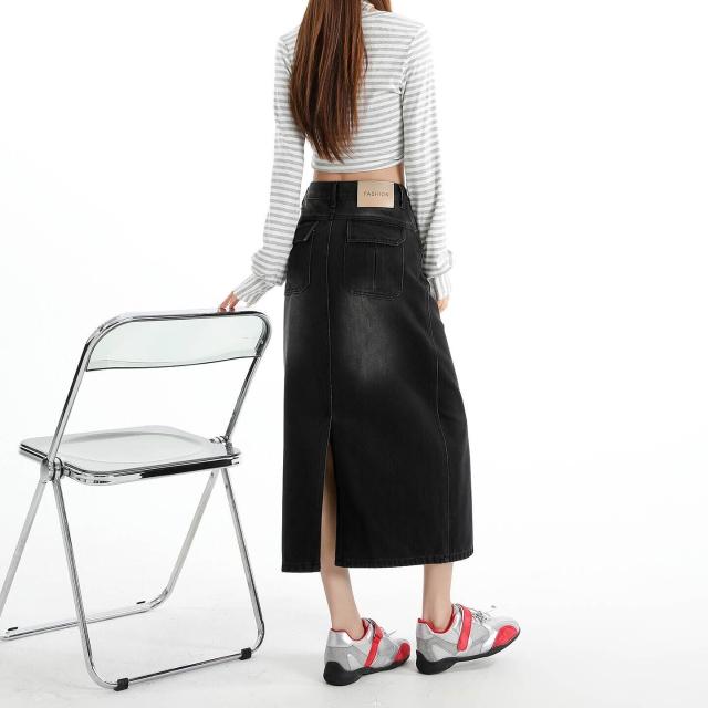 裙子半身裙長裙牛仔裙春季復古高腰牛仔半身裙女開叉設計感中長款顯瘦包臀裙復古牛仔長裙女韓版顯瘦直筒高腰開叉百搭通勤遮肉日常長裙
